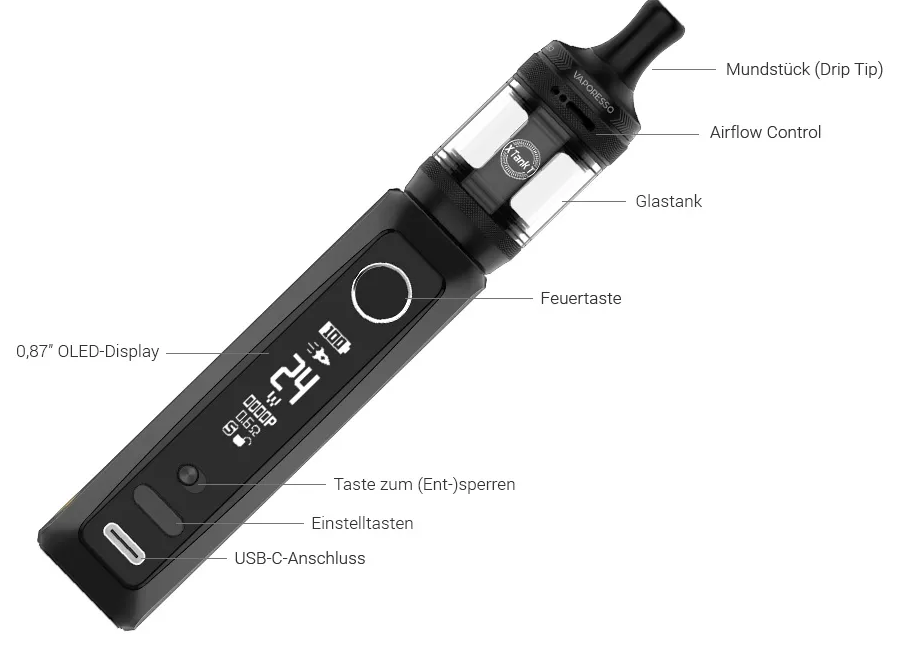 •    Nikotin ist nicht nur gesundheitsschädlich, sondern kann auch eine dauerhafte Abhängigkeit verursachen. Bitte verwenden Sie E-Zigaretten bewusst und informieren Sie sich über mögliche Risiken.